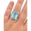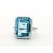 13.97 Carat Emerald Cut Blue Topaz Ring with Diamonds in 18 Karat White Gold