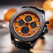 7ct. VS2 Natural Round Orange Diamond Black Rhodium Classic Men Watches