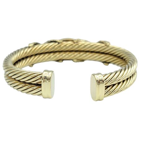 David Yurman Mother of Pearl and Diamond Cable Cuff Bracelet in 14K Yellow Gold