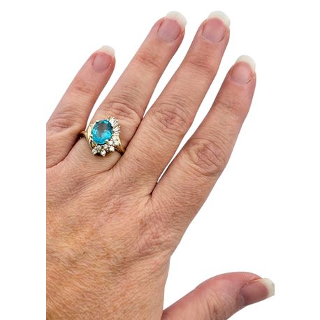 John C. Rinker Oval Cut Apatite & Diamond Cocktail Ring in 14 Karat Yellow Gold