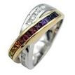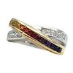 Rainbow Sapphire & Diamond Crossover Band Ring in Two Tone 14 Karat Gold