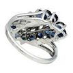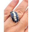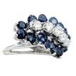 Round Diamond and Blue Sapphire Diagonal Cluster Motif Ring 14 Karat White Gold