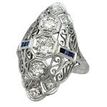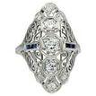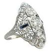 Vintage Diamond and Blue Sapphire Navette Style Cocktail Ring in Platinum