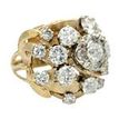 Vintage Round and Old European Cut Diamond Domed Cluster Ring in 14 Karat Gold