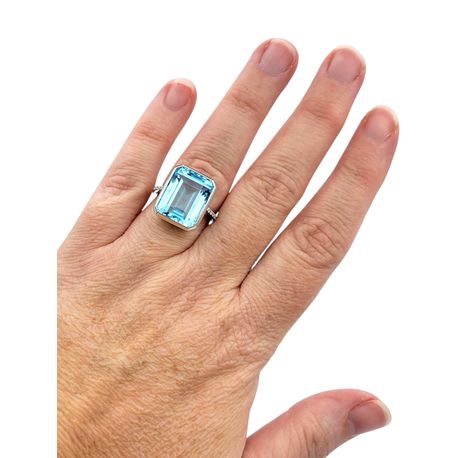 13.97 Carat Emerald Cut Blue Topaz Ring with Diamonds in 18 Karat White Gold