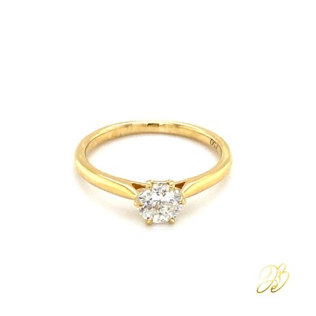 Discover the enchanting AR-001 ring, crafted from luxurious 18K Yellow Gold. This eye-catching piece features a stunning 0.50ct Round Diamond with exceptional J color and VVS1 clarity, perfect for those who appreciate elegance and style.