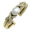 David Yurman Mother of Pearl and Diamond Cable Cuff Bracelet in 14K Yellow Gold