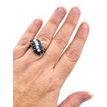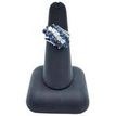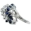 Round Diamond and Blue Sapphire Diagonal Cluster Motif Ring 14 Karat White Gold