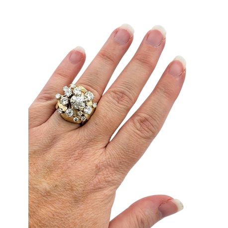 Vintage Round and Old European Cut Diamond Domed Cluster Ring in 14 Karat Gold